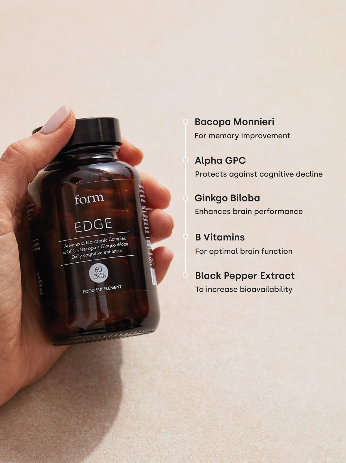 To perform at our best we need our brains working at their best. Think of Edge as a multivitamin for your brain, containing everything you need to ensure your brain is functioning at its best, every day.